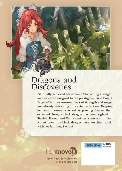 Fia finally achieved her dream of becoming a knight, and was even assigned to the prestigious First Knight Brigade! But her unusual feats of strength and magic are already attracting unwanted attention. Keeping her saint powers a secret is proving harder than expected. Now, a black dragon has been sighted in Starfall Forest, and Fia is sent on a mission to find itβ¦but does this black dragon have anything to do with her familiar, Zavilia?