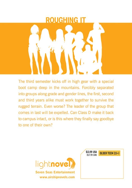 The third semester kicks off in high gear with a special boot camp deep in the mountains. Forcibly separated into groups along grade and gender lines, the first, second and third years alike must work together to survive the rugged terrain. Even worse? The leader of the group that comes in last will be expelled. Can Class D make it back to campus intact, or is this where they finally say goodbye to one of their own?