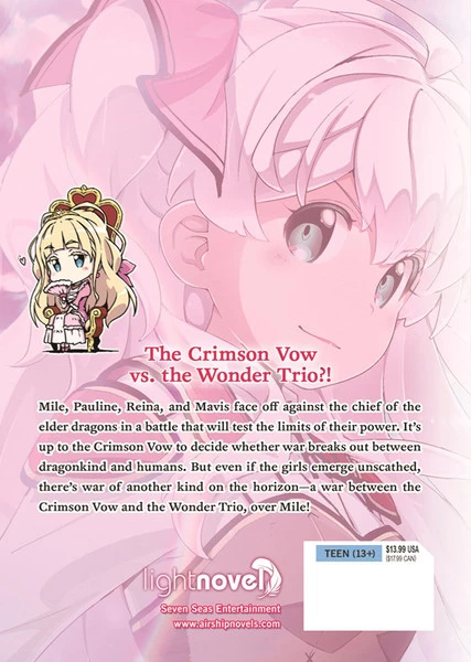 Mile, Pauline, Reina, and Mavis face off against the chief of the elder dragons in a battle that will test the limits of their power. It’s up to the Crimson Vow to decide whether war breaks out between dragonkind and humans. But even if the girls emerge unscathed, there’s war of another kind on the horizon—a war between the Crimson Vow and the Wonder Trio, over Mile!