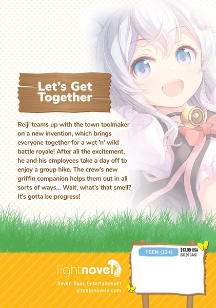 Reiji teams up with the town toolmaker on a new invention, which brings everyone together for a wet ‘n’ wild battle royale! After all the excitement, he and his employees take a day off to enjoy a group hike. The crew’s new griffin companion helps them out in all sorts of ways… Wait, what’s that smell? It’s gotta be progress!