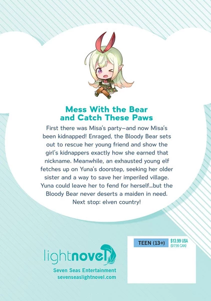 First there was Misa’s party–and now Misa’s been kidnapped! Enraged, the Bloody Bear sets out to rescue her young friend and show the girl’s kidnappers exactly how she earned that nickname. Meanwhile, an exhausted young elf fetches up on Yuna’s doorstep, seeking her older sister and a way to save her imperiled village. Yuna could leave her to fend for herself…but the Bloody Bear never deserts a maiden in need. Next stop: elven country!