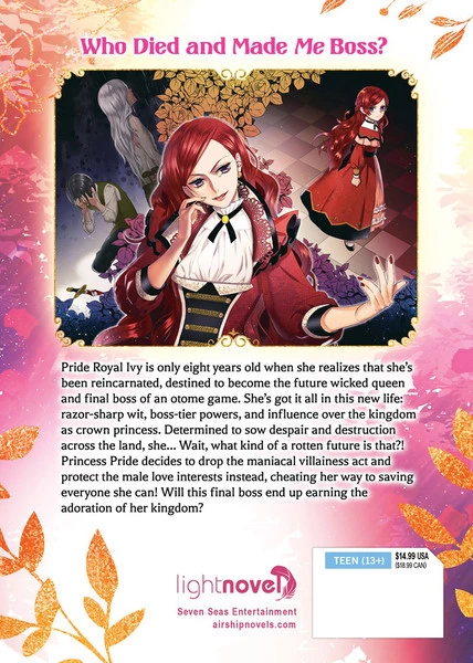 Pride Royal Ivy is only eight years old when she realizes that she’s been reincarnated, destined to become the future wicked queen and final boss of an otome game. She’s got it all in this new life: razor-sharp wit, boss-tier powers, and influence over the kingdom as crown princess. Determined to sow despair and destruction across the land, she… Wait, what kind of a rotten future is that?! Princess Pride decides to drop the maniacal villainess act and protect the male love interests instead, cheating her way to saving everyone she can! Will this final boss end up earning the adoration of her kingdom?