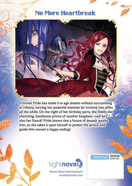 Princess Pride has made it to age sixteen without succumbing to villainy, turning her potential enemies (or victims) into allies all the while. On the night of her birthday party, she meets the charming, handsome prince of another kingdom–and he’s also her fiancé! Pride knows that a future of despair awaits him, so she takes it upon herself to protect the prince and guide him toward a happy ending!