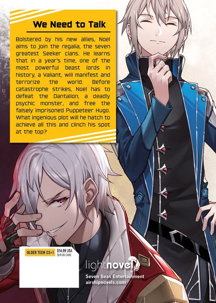 Bolstered by his new allies, Noel aims to join the regalia, the seven greatest Seeker clans. He learns that in a yearβs time, one of the most powerful beast lords in history, a Valiant, will manifest and terrorize the world. Before catastrophe strikes, Noel has to defeat the Dantalion, a deadly psychic monster, and free the falsely imprisoned Puppeteer Hugo. What ingenious plot will he hatch to achieve all this and clinch his spot at the top?