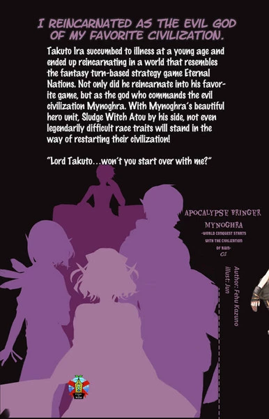 Takuto Ira succumbed to illness at a young age and ended up reincarnating in a world that resembles the fantasy turn-based strategy game Eternal Nations. Not only did he reincarnate into his favorite game, but as the god who commands the evil civilization Mynoghra. With Mynoghraโs beautiful hero unit, Sludge Witch Atou by his side, not even legendarily difficult race traits will stand in the way of restarting their civilization!