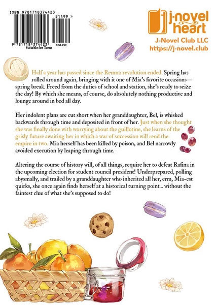 As if that wasn’t enough, she discovers that this terrible chain of events can be traced back to Rafina’s tragic transformation into a dictator. Altering the course of history will, of all things, require her to defeat Rafina in the upcoming election for student council president! Underprepared, polling abysmally, and trailed by a granddaughter who inherited all her, erm, Mia-est bits, she once again finds herself at a historical turning point… without the faintest clue of what she’s supposed to do!