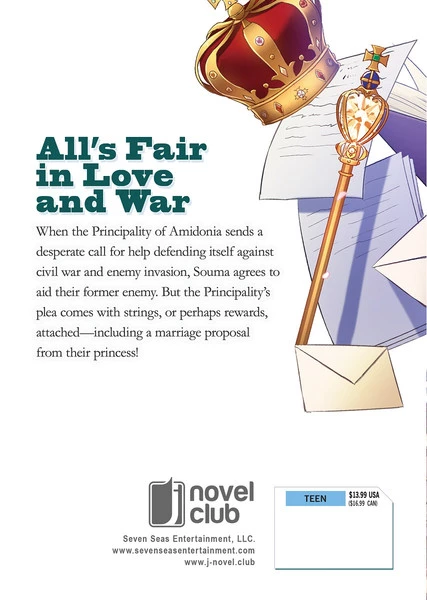 When the Principality of Amidonia sends a desperate call for help defending itself against civil war and enemy invasion, Souma agrees to aid their former enemy. But the Principality’s plea comes with strings, or perhaps rewards, attached—including a marriage proposal from their princess!