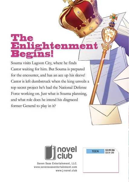 Souma visits Lagoon City, where he finds Castor waiting for him. But Souma is prepared for the encounter, and has an ace up his sleeve! Castor is left dumbstruck when the king unveils a top secret project heβs had the National Defense Force working on. Just what is Souma planning, and what role does he intend his disgraced former General to play in it?