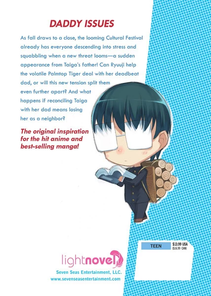 It’s Ryuuji’s first day of his second year of high school and it seems as if things are looking up. He gets to sit in between his only friend, Yuusaku, and Kushieda Minori, the girl he’s secretly crushing on. But just when he thinks the stars are aligned in his favor, he unwittingly crosses the most feared girl in school, Aisaka Taiga, making her into his arch enemy. To top it off, Taiga has moved in right next door to Ryuuji and happens to be Minori’s best friend! Can this school year possibly get any worse?!