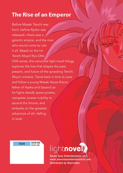Based on the hit Tenchi Muyo!Ryo-Ohki OVA series, this trilogy of canonical light novels explores the lore that shapes the past, present, and future of the sprawling Tenchi Muyo universe. In the first novel, delve deep into the backstory of Emperor Azusa (Ayeka and Sasami’s father) while learning what happened immediately following the conclusion of the second OVA series. In the second novel, witness the mysterious past of Tenchi’s grandfather Yosho, and how he came to find himself on Earth in the aftermath of Ryoko’s attack on Jurai. And in the third and final novel, learn the origin of the super genius Washu and the previously untold life she led as a goddess over 20,000 years before the events of the Tenchi Muyo: Ryo-Ohki series!
