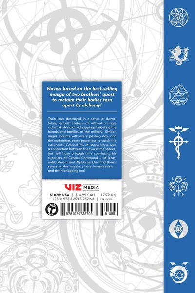 Train lines destroyed in a series of devastating terrorist strikes—all without a single victim! A string of kidnappings targeting the friends and families of the military! Civilian anger mounts with every passing day, and the authorities seem powerless to catch the insurgents. Colonel Roy Mustang alone sees a connection between the two crime sprees, but he’ll have a tough time convincing his superiors at Central Command—at least, until Edward and Alphonse Elric find themselves in the middle of the investigation—and the kidnapping too!