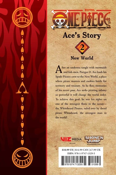 After an undersea tangle with mermaids and fish-men, Portgaz D. Ace leads his Spade Pirates crew to the New World, a place where pirate masters and rookies battle for territory and treasure. As he flees memories of his secret past, Ace seeks pirating infamy so powerful it will change the world order. To achieve this goal, he sets his sights on one of the strongest fleets in the oceanโthe Whitebeard Pirates, ruled over by dread pirate Whitebeard, the strongest man in the world!