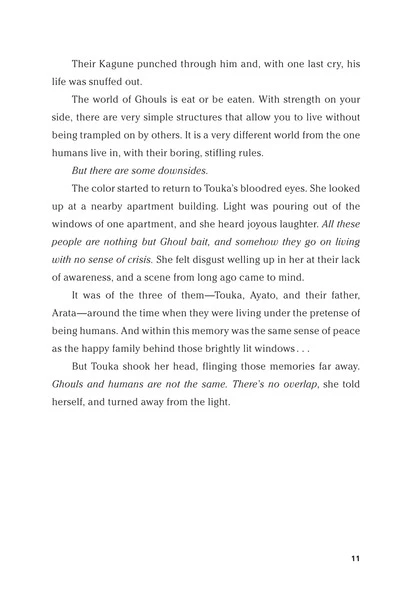 Before the steel frame incident in the 20th Ward, there were reports of Ghouls lurking among the masses in Tokyo, carefully stalking their prey. This novel covers the events that occurred before the opening act of Tokyo Ghoul: a time when Kaneki was still human, the Kirishimas still lived together, and Rize enjoyed her feasts.